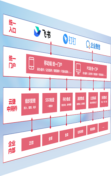 对协作平台提供支持服务,,支持企业应用与协作平台对接,,,包含组织同步、、消息集成、、待办集成等。。。支持目前主流的协作平台:钉钉、、、、企微和飞书。。。